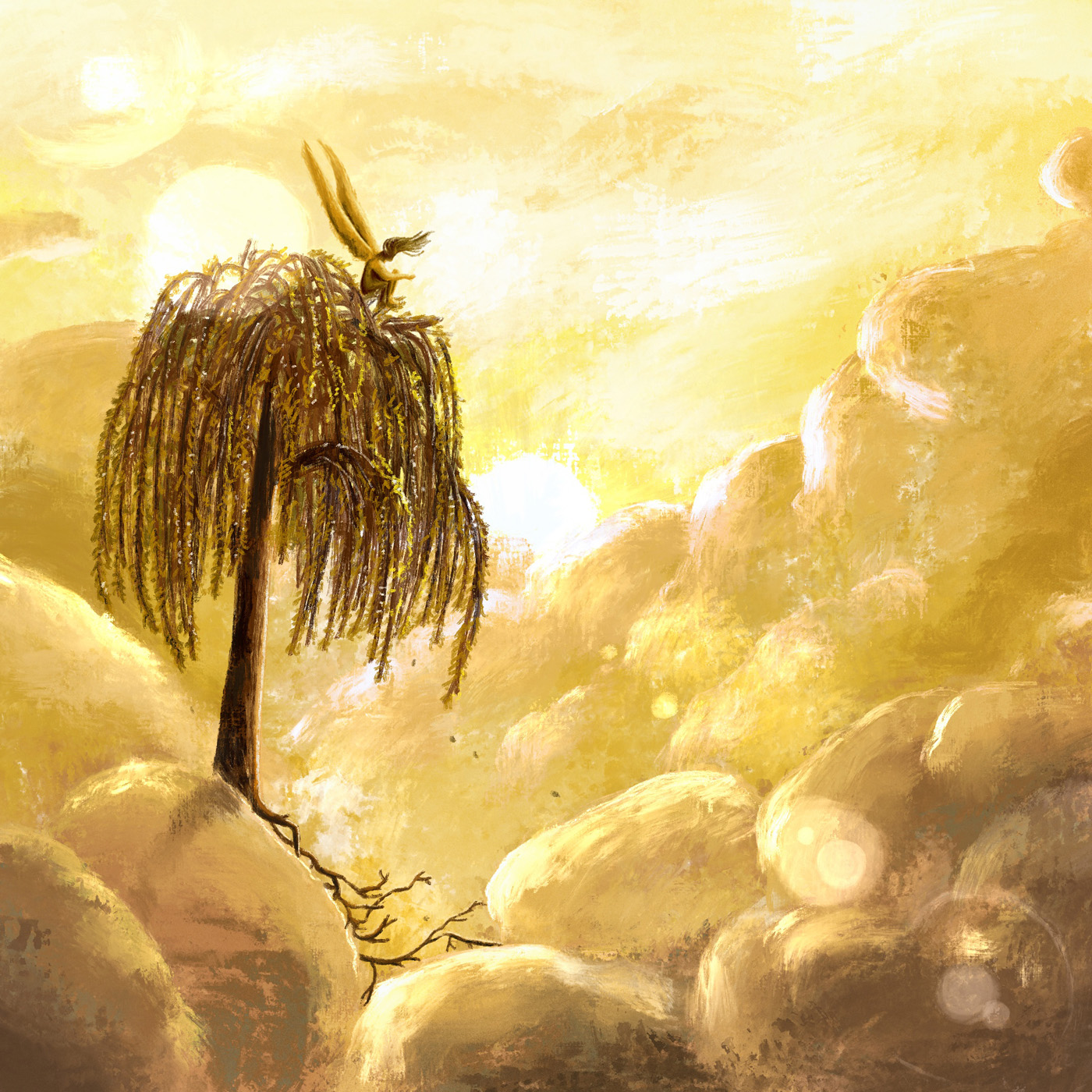 Quelque chose d’angélique repose dans les notes et la voix de Laura Allan. As I am m’émeut profondément. J’ai voulu composer une scène très lumineuse au-dessus de tout, un havre de paix pour un ange plongé dans ses réflexions (clin d’œil au titre de l’album). Les nuages ne ressemblent pas vraiment à ceux que j’avais en tête (des réalistes) et je les trouve mieux ainsi.