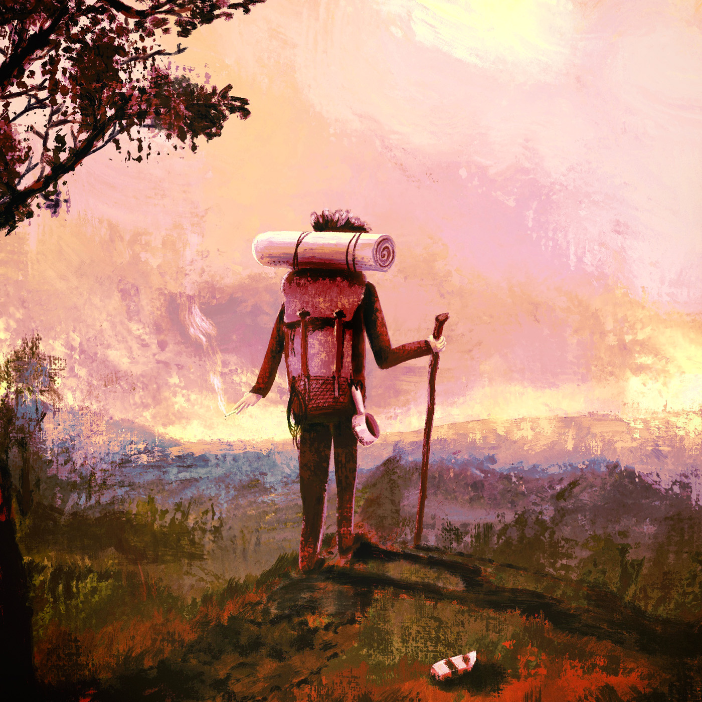 Blackwaterside de Bert Jansch me rappelle les musiques d’Eddy Vedder et donc le film Into the wild. J’y perçois aussi un côté liberté sans respect, sans trop savoir pourquoi puisque je n’ai pas cherché à traduire les paroles. J’ai donc dessiné un randopollueur. Le paysage a de belles teintes et les gros coup de pinceau suggère assez bien les éléments.