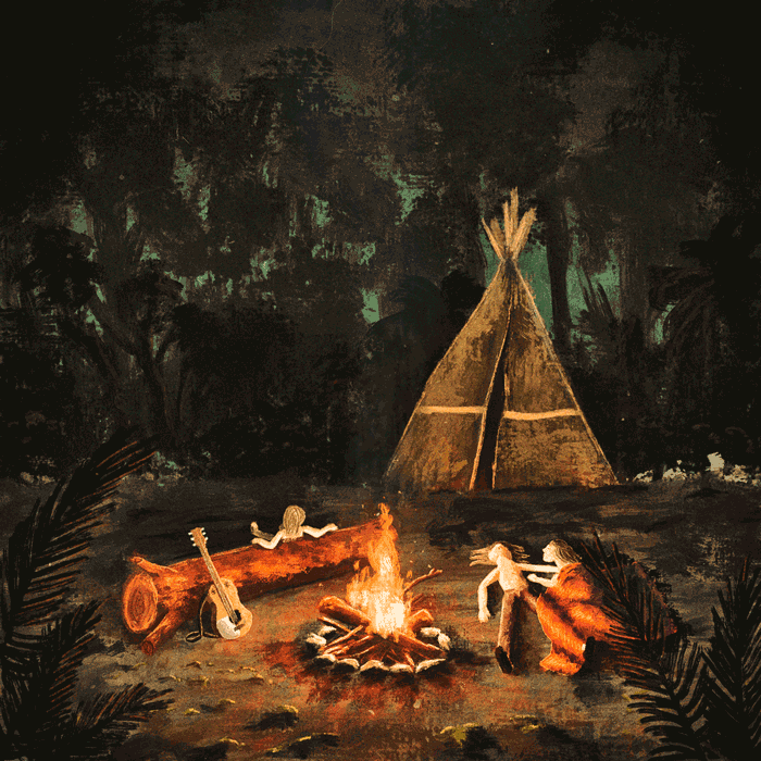 La musique est paisible, planante et pleine de volupté. Les corps nus perlent de sueur et, dans la jungle comme dans la fumée, s’immisce l’entière Création. J’ai bien aimé Planet Caravan de Black Sabbath. L’image représente plutôt bien ce titre. J’aime particulièrement cette impression d’extérieur fermé, comme les boules à neige, sauf que ce n’est pas pareil et que j’ai du mal à définir ce qui me fait penser cela; peut-être le noir qui encadre la scène.
